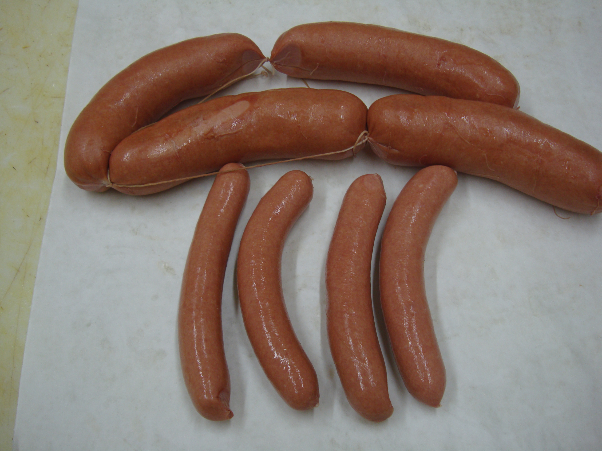 Mister Brisket purveys all beef, natural casing hot dogs in two sizes—thick Jumbo Dogs and  six to a pound weiners.  Natural casing hot dogs have a terrific texture and snap when you bite into them.  These Chicago style dogs are some of the tastiest in the country.
