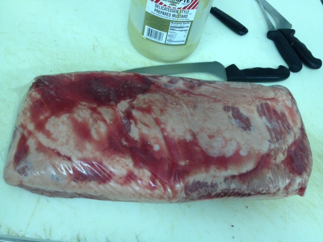 This wonderful item comes in roughly 1 ½ lb strips and works well in dishes that call for beef short ribs or beef stew.  Each rectangular hunk comfortably feeds 2 adults and is wonderful when slow cooked or smoked.