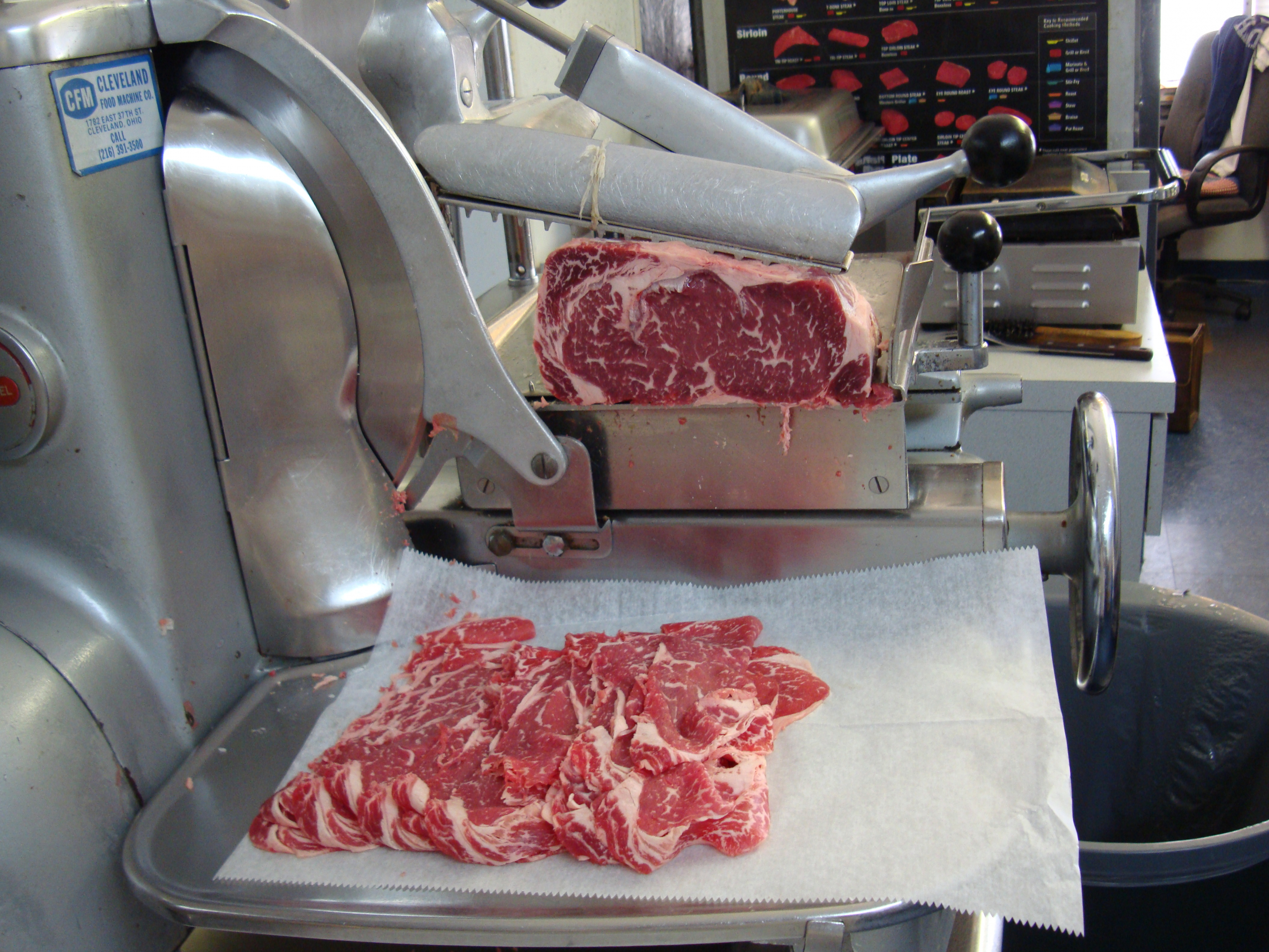 A popular item for a traditional Japanese dish, Shabu Shabu is well trimmed boneless Meyer Natural Angus Ribeye sliced paper thin.  It’s labor intensive but worth the effort.